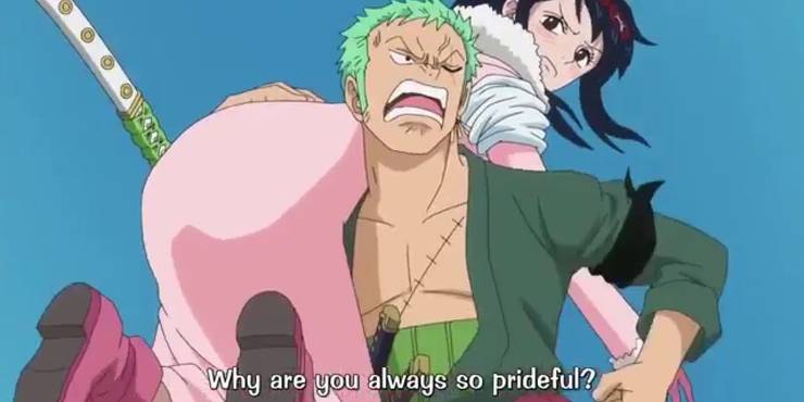 La natura schietta di Zoro è ancora prevalente nella serie; non ha problemi a dire le cose come stanno. Ricorda sempre ai suoi compagni di equipaggio il mondo in cui vivono. Durante l’arco Davy Back, Zoro dice a Chopper di smettere di piangere, dopo essere entrato temporaneamente nella Foxy Pirate Crew. Gli ricorda anche che ha scelto di essere un pirata. Non era obbligato a lasciare Drum Island. Anche Luffy non è esente dalle sue critiche.