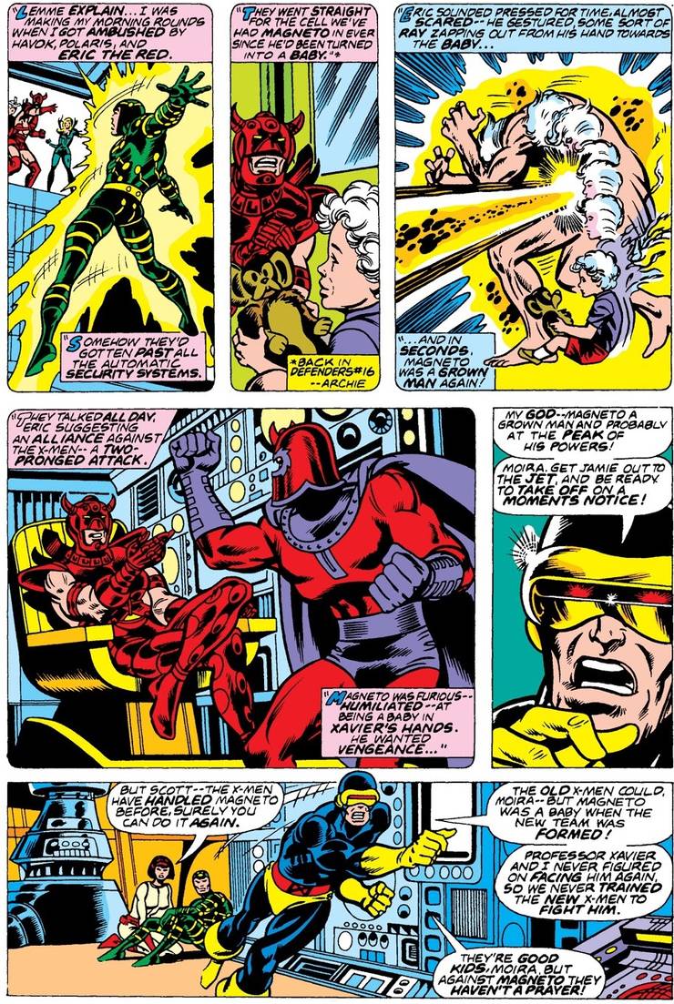 一方、Defenders #16 (by Len Wein, Sal Buscema and Mike Esposito) では、マグニートと彼の悪のミュータント兄弟団は「究極のミュータント」を操ろうとしていましたが、代わりにマグニートと彼の取り巻きが幼児化させられていました。…