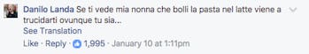 The wideo, który ma w górę z 25 milionów wyświetleń od czasu opublikowania we wtorek, jest najwyraźniej uderzając nerw z włoskiej publiczności. Odpowiedzi są bardziej pyszne niż cokolwiek gówno jest mieszane w ręce i patelni wideo.