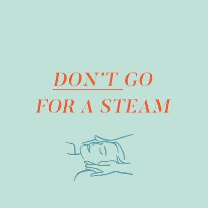 Det är frestande, eftersom många spa-anläggningar erbjuder ett fantastiskt gratis ångbastu, men ditt ansikte har redan ångats till max under ansiktsbehandlingen och mer kan orsaka trasiga kapillärer. Om du vill dra nytta av det, gå dit innan din behandling.